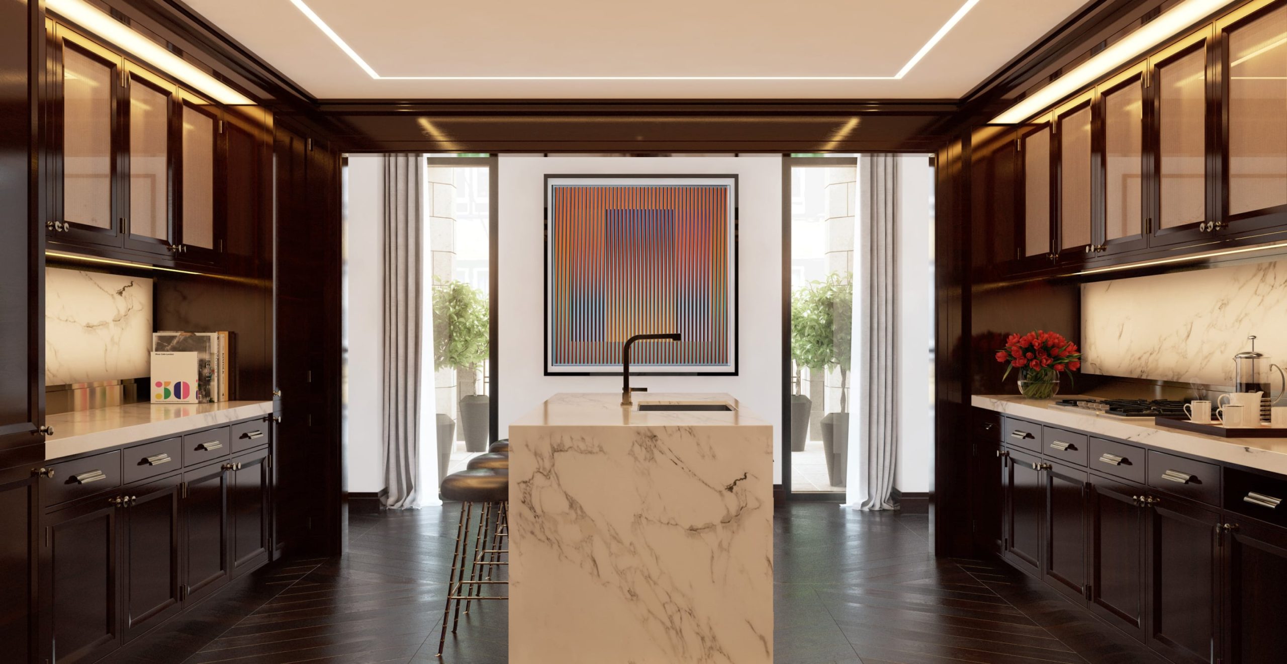 Privacy is paramount in the gracefully situated penthouse pavilions that are carefully concealed from the street, yet provide far-reaching views over the rooftops of Mayfair towards the open green spaces of the Royal parks beyond.